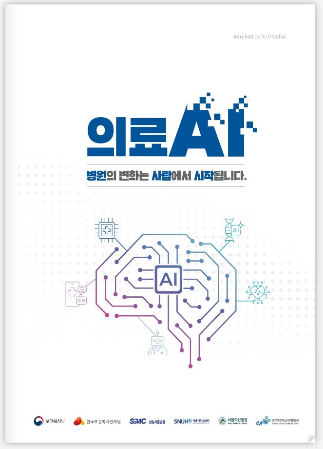 글쓴이 dowume3 / 2026년 04월 07일 Portfolio 사진 비율 조정 의료AI 성과공유 분류 책자 및 Ebook 고객사 한국보건복지인재원 사이즈 182mm*257mm 표지 스노우 300g 내지 백색모조 150g 후가공 에폭시별도 하단 내용의 이미지 클릭시 Ebook으로 진입 목록